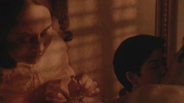 Schrader sempre a "jogar ao cinema", completamente embebido na gramática cinematográfica e na cinefilia. Nesta cena, por exemplo: não sendo um cineasta propriamente casto (de todo; embora o gráfico, o explícito, também não sejam marcas suas), repare-se como, meta-referencialmente, ele resolve a cena. "Let's disappear": forma simultaneamente de 1. elidir a questão visual do sexo; 2. "desaparecerem" no desejo, no prazer, no orgasmo (tal e qual na droga de que ambos tentam escapar); 3. desaparecerem, efectivamente, literalmente, do enquadramento; 4. desaparecerem dos olhos do espectador, porque o êxtase absoluto só a eles lhes pertence e diz respeito - mas também porque, em termos de "indústria", a cinematográfica e a moral, "tem que" se esconder a coisa do espectador... e volta-se a 1.